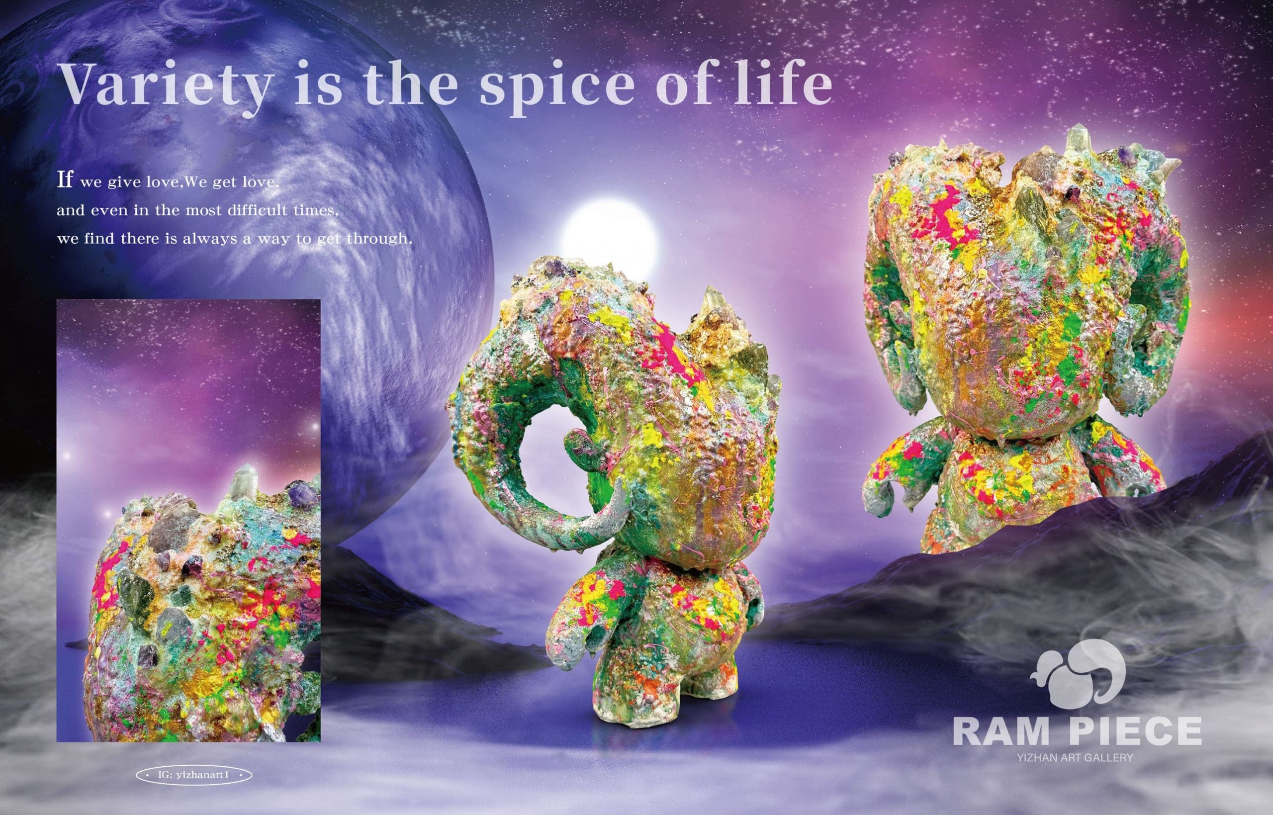 我們可以以豐盛的心、在豐盛中創造豐盛,更多的豐盛。如同這個作品五彩斑斕的顏色、經驗、堆疊、形狀、能量、磁場、重量、以及光的折射,都是我們一步一步踏出來的靈魂歷練,是對自己、對他人璀璨的祝福。